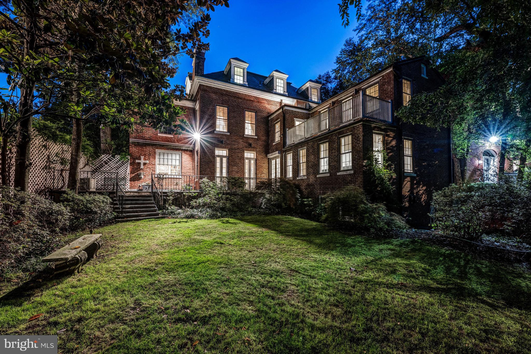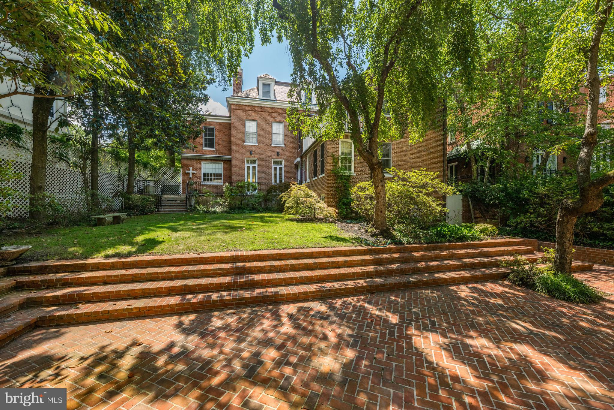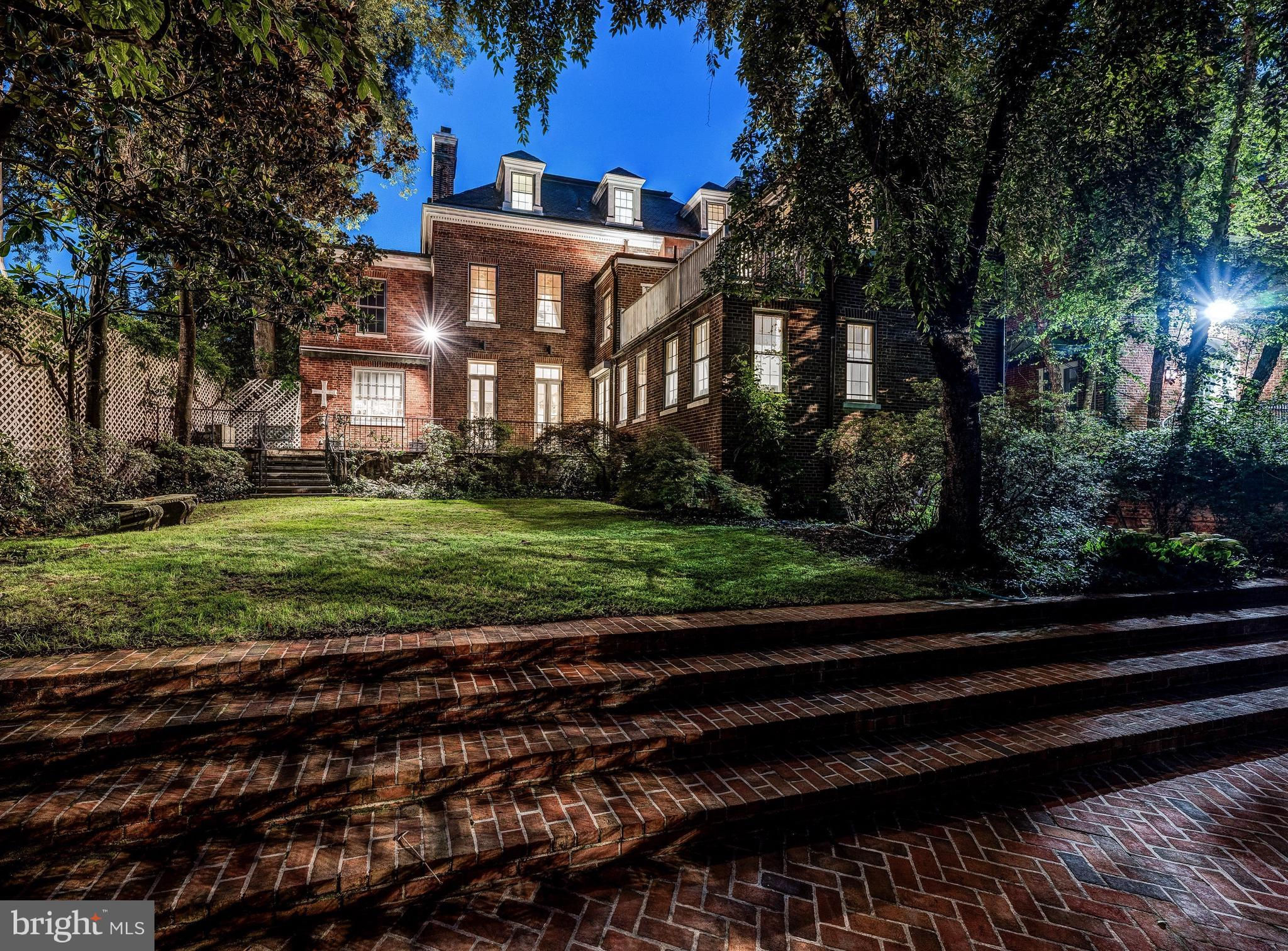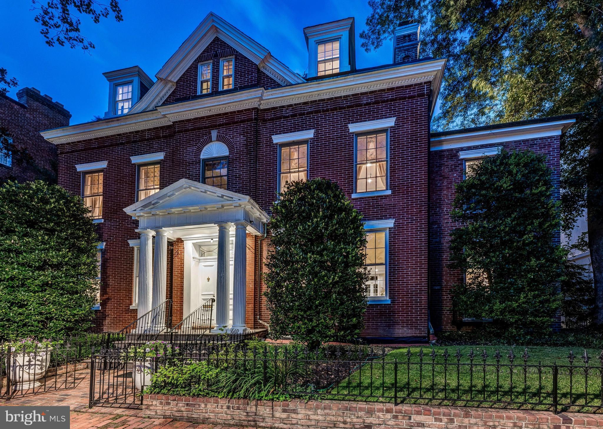 1669 31st Street NW is being offered for sale for the first time in almost 50 years and welcomes you with the warmth of elements of Jeffersonian Classical and Neo Classical architecture. The red brick exterior with white columns spans four levels in its entirety. Located directly across the street from the gardens of Tudor Place one will find views from the front rooms of the home are seasonally spectacular. From the moment you enter this elegant high ceilinged residence one can just imagine the array of prominent owners that graced its halls. Sited on a beautiful parcel of land that was originally part of 6 acres, then sold in 1802 by the second Mayor of Georgetown Thomas Beall (a direct descendant of George Washington) to the original owner, the residence has since been owned by several notable families and cabinet members. Once inside the home, the natural light and abundance of windows and french doors allow beautiful views from almost every room. The vestibule and grand foyer with wide staircase provide the centerpiece of the home, from which the expansive dining room (which seats 22) and formal double parlor living room balance each wing of the residence. The double parlor living room with fireplace and bar area open to a large library/sitting room with built-ins and corner windows. . The wideplank floors and graceful mouldings are a testament to the historically preserved architecture. The main hallway and dining room lead to a generously sized cooks kitchen with island and separate breakfast room, all graced with hand painted tiles. A back staircase allows for a second stairway up to the second story of the home. Off the main hallway one finds the coat closet, guest bathroom and a set of french doors leading to the flagstone terrace, brick patio, expansive garden, red brick poolhouse/guest house and landscaped gardens. A one car red brick garage completes this main level of the residence. The second story of the home provides for a two room primary suite with pocket doors, two fireplaces and a luxurious spacious primary bath. A second guest bedroom across the hall with fireplace, large bath and built in wardrobes mirror the shape and size of the primary sitting room. Two additional bedrooms and two additional baths complete this level of the home, and offer a small balcony off the hallway. Continuing to the third story of the home one will find extra large bedrooms number 5 and 6 each with an ensuite bath, walk in closets, multiple dormer windows and flooded with light. The lower level of the home accessed from the kitchen staircase includes a spacious bedroom (bedroom 7), a full bath, a sitting room, full laundry, half-bath, wine cellar, storage rooms and utility room. A side entrance leads to both a private walkway and gated entrance to the garden. In approximately 1983 and in 1991, the current owner renovated the home to add the swimming pool, pool house/guest house, brick patio and also renovated the kitchen and all bathrooms. A grand home with all the right spaces for entertaining and family living, awaiting a new owners special touches to make it their own. An outstanding floorplan with an abundance of light, high ceilings on all three main and upper floors make this home truly special. By appointment with 24-48 hour notice. Registration form required.