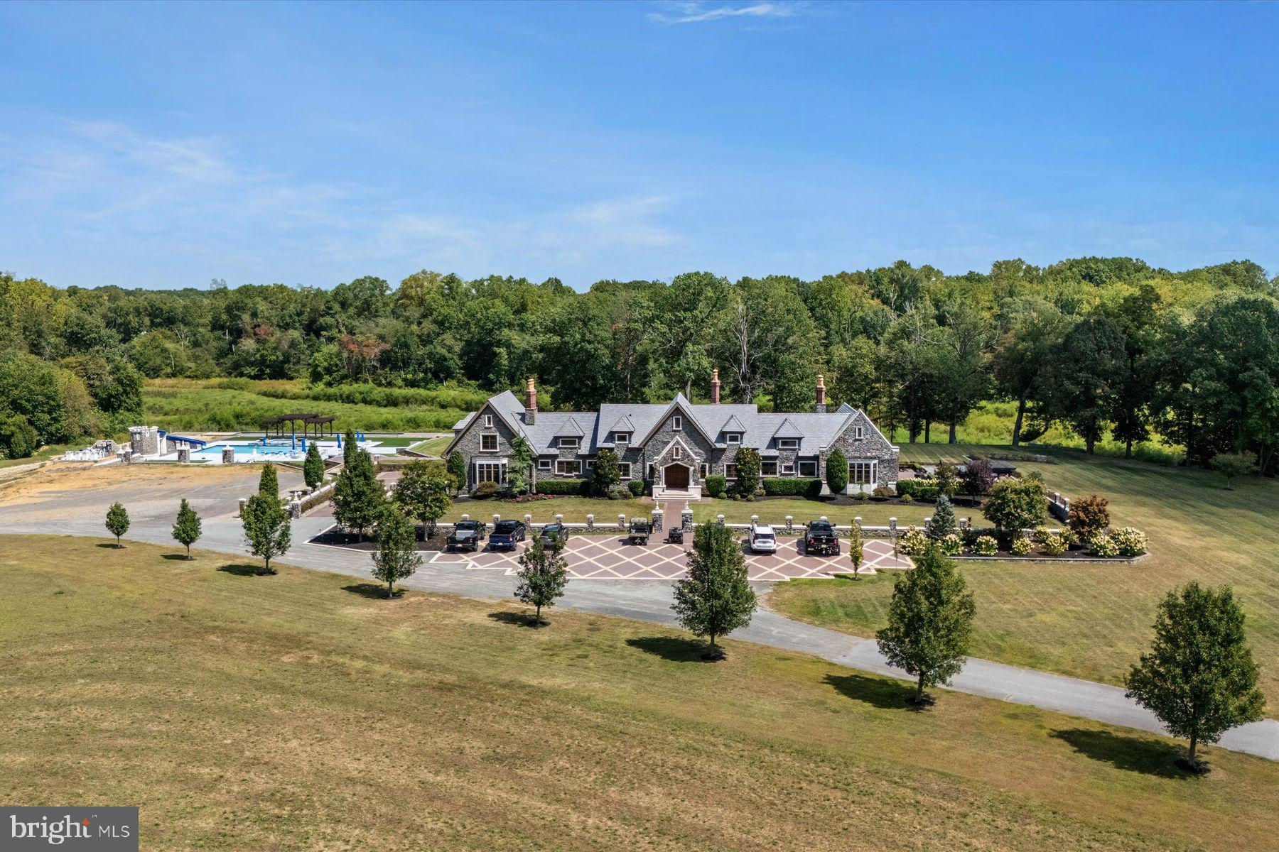 Welcome to a one-of-a-kind equestrian estate that blends privacy, beauty, and world-class amenities across approximately 60 pristine acres. Whether you envision it as a private family retreat, a working equestrian estate, or a stunning country escape, this property delivers on every level. From the moment you arrive through the grand gated entrance, you’ll know you’ve entered a retreat unlike any other. Meander down a treelined drive to a stunning residence, where craftsmanship, comfort, and eco-friendly living come together. This custom-built stone and timber frame home, designed with sustainable SIP construction, is not only elegant but efficient, and thoughtfully designed to keep utility costs low without ever compromising on style. A gorgeous entrance invites you into a spectacular great room with a soaring cathedral ceiling, exposed beams, Italian marble floors and a handsome woodburning fireplace. The open floor plan flows into a magnificent kitchen, custom cabinetry, granite countertops, outfitted with professional-grade Wolf appliances, two dishwashers, pullout refrigerators and freezers, warming drawer, induction cooktop, double oven with 6-burner range w/ griddle, butler’s pantry and walk-in pantry. The perfect blend of beauty and function. Tucked away on the first floor is a dedicated wing for the primary bedroom suite with a woodburning fireplace, a custom walk-in closet, a luxurious spa-like bathroom with antique soaking tub, walk-in shower with jets, steam and tanning feature. A spacious sitting room with cathedral ceiling, stone woodburning fireplace, amazing natural light with elegant doors accessible to a private outdoor oasis w/ a covered pergola and a Michael Phelps swim spa. Also conveniently located on the main level, you will find a wet bar, den w/ fireplace, a full bathroom and access to a temperature controlled oversized 3-car garage w/ catering kitchen w/ a Sub-Zero refrigerator, ice machine and two convection ovens. An elevator takes you to a private & secure upper-level w/ an office and cozy den. The elevator also provides access to the lower level with a custom wet bar, powder room, 2nd laundry room and incredible storage. The secondary bedrooms are located at the opposite end of the home on the 2nd level. This wing includes a family room, 3 en suite bedrooms and laundry. The home offers the perfect integration of indoor and outdoor spaces with multiple access points to the extensive, wraparound brick paver patio, which is perfect for relaxation and entertainment. The resort-style pool complex boasts a saltwater heated pool w/ waterfall feature, sun shelf, spacious hot tub, custom slide and infrastructure for a future pool house and bocce ball court. World-class equestrian facilities include a European-style barn, custom-built by B&D Builders with 10-stalls (12’x12’) w/ automatic Nelson waterers, two oversized indoor wash stalls w/ hot & cold water, radiant heated floors, dual coal-fired blowers & two outdoor wash stalls. Additional amenities include a large storage rm, laundry rm and tack rm w/ 10 lockers. Barn includes a 3-bedroom apartment w/ a living rm & full kitchen w/ Sub-Zero appliances. Perfect for staff/guests. Directly adjacent is a spectacular 80’ x 180’ indoor arena w/ oversized garage-style doors with GTT fiber footing. Attached to the arena is a heated 8-car garage w/ high ceilings. Perfect for equipment, vehicles or workshop. Two shed rows; a 4-stall (12’x12’) w/ a tack rm & a 5-stall shed row, both w/ Dutch doors and windows. Two beautiful outdoor sand arenas. 200’ x 200’, ideal for jump course or flatwork and 180’ x 200’, perfect for dressage or versatility work. Two 40’ x 40’ stallion paddocks, six additional paddocks w/ 12’ x 12’ run-in sheds. Each paddock equipped w/ Nelson heated waterers. Additional outbuildings: large open pole barn & detached garage/storage shed. The barn is supported by a secondary gated entrance and its own well.