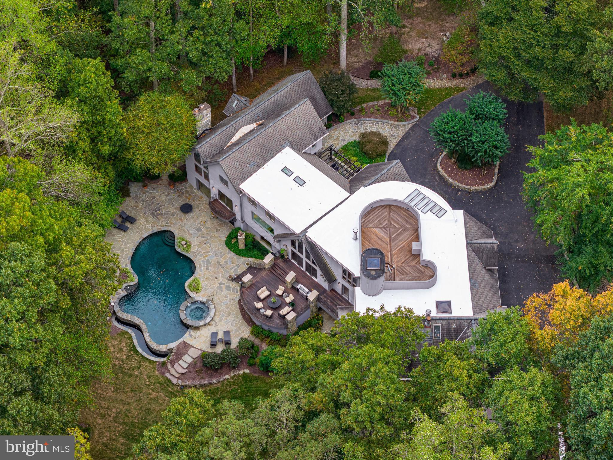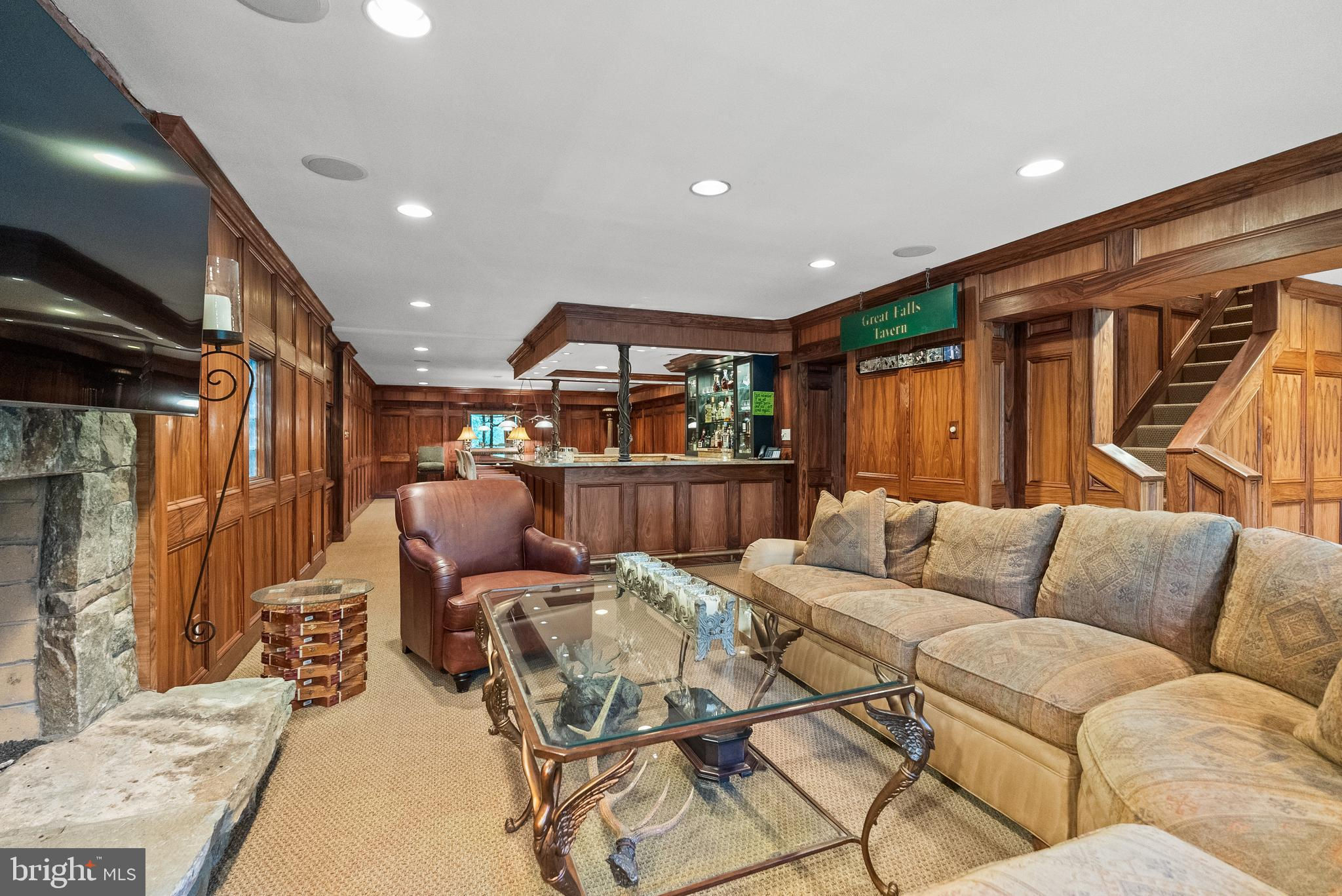 Welcome to the best of Aspen in Great Falls! Enter through the gates to a spectacular setting sited on 6 verdant acres and drive down the circular driveway to find a private resort with stack stone hardscape, lawn art and mature landscaping. Light-filled Grand Foyer. Hand-forged Cardine Studios custom iron railings, exposed wood beams and stone fireplaces throughout. Gourmet Kitchen with Thermador/SubZero appliances, spacious island, big picture window with scenic, wooded vistas and a balcony that overlooks a fabulous pool and pond. An adjacent morning room with stone terrace doubles as entertaining or study space. Expansive A-Frame family room with beams, fireplace, and multi-level deck access. Main level includes second Owner’s suite with luxe bath, Au-Pair/In-Law, luxurious laundry with stone accents, grand great room with fireplace and soaring ceilings. Upper level Owner’s suite features balcony, custom beverage center, two extra large walk-in closets and spa-like primary bath with heated floors, soaking tub and steam shower. Spiral staircase leads to rooftop sundeck with 360-degree views. Three additional Bedrooms with updated baths. Lower level offers multi-person office with conference area, wine tasting room, ventilated Cigar room, full Bath, IT room and workshop. Club level entertainment space with paneled Bolivian Rosewood includes game areas, professional bar, billiards, and Caterer’s kitchen. Gym with “environmental bed” with steam, sauna and sun lamp. Oversized heated 5-car garage with lift. Resort-like grounds feature infinity pool/spa, multi-level decks, slate patios, pickleball/sport court with basketball hoops and wooded seclusion.